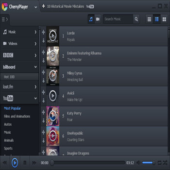 CherryPlayer - портативный уникальный аудио и видеоплеер, поддерживающий все популярные форматы с возможностью прослушивания и просмотра контента прямо из Интернета. Проигрыватель особенно удобен для таких ресурсов, как ВКонтакте, Last.fm, YouTube, BBC, BillBoard, т.к. тесно интегрирован с ними и их огромными архивами. Кроме этого, он поможет загрузить понравившийся медиаконтент на компьютер без использования сторонних программ.